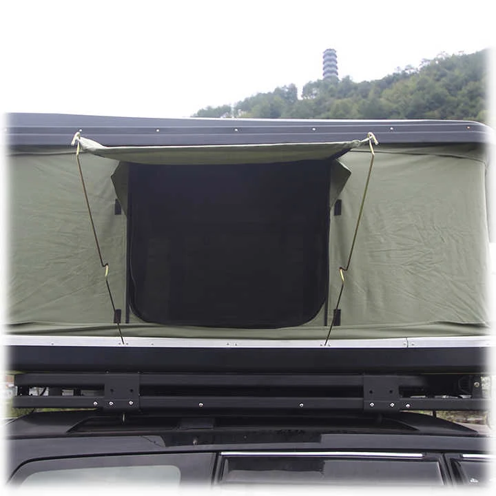 د کیمپ کولو نرم موټر چت خیمه، د عصري خیمې پیټرډ شکل ستاسو او ستاسو ګیر لپاره اضافي ژغورونکي داخلي ځای وړاندې کوي