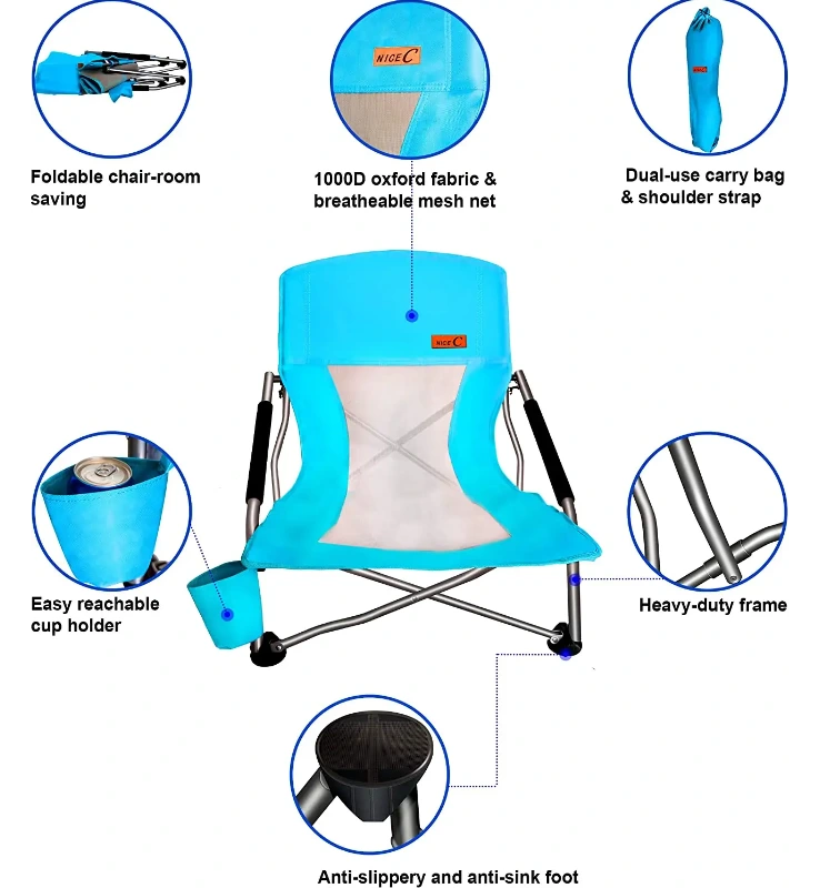 د ساحل سیټ فولډ کول، د کرسۍ تنظیم کول خورا اسانه دي: یوازې فرد جلا کړئ او له خپلې څوکۍ څخه خوند واخلئ. د لرې کولو لپاره، په ساده ډول چوکاټ په ګډه فشار ورکړئ او دا د هغې د وړلو په قضیه کې یې واچوئ. پاکول هم اسانه دي: یوازې د تولیه او اوبو سره پاک سره پاک کړئ.