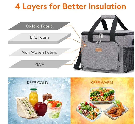 انسولټ پکنک کڅوړه، د غرمې ډوډۍ د انسول شوي موادو څخه جوړ شوی دی کوم چې کولی شي خواړه وساتي او د 5 ساعتونو څخه ډیر وخت لپاره یخ یا ګرمي کړي. سربیره پردې، د کورنیو لاکر د خواړو درجې پیوا فیلو څخه جوړ شوی دی نو تاسو کولی شئ خپل خواړه په یوه اندیښنه کې مستقیم په کڅوړه کې واچوئ. د 6mm 6mm ایپ فیم ستاسو کانتینرونو، خواړو او څښاک لپاره عالي محافظت چمتو کوي.