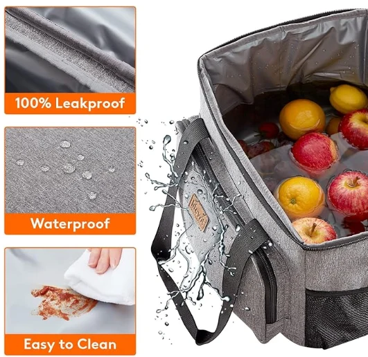 انسول شوی پکنک کڅوړه او ډایجع واغوندئ او په اسانۍ به نه وږدئ کله چې د غرمې ډوډۍ ګرم خواړه وساتي. د لوړ کیفیت پیاوړي زپرونه به د ماتولو امکان کم کړي. ستاسو د دفتر اړتیاو لپاره مناسب او پکنک خوراکي توکو ذخیره کول سربیره پردې، د مخ او څنګ اضافي جیب کولی شي کوچني توکي کوچني توکي او غوږونه ولري.