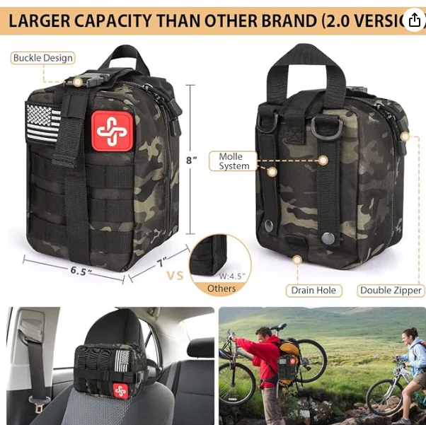 د MOLO بیرون لومړی مرستې پوس ځای په ټول 250pcs کې شامل دي چې د ژوندي پاتې کیدو وسایلو شامل دي. دا خورا مشهور ژوندي پیر او وسیلې لري، همدارنګه د لومړنۍ مرستې کټ چې د بیړني شرایطو لاندې د کورنۍ یا یوې ډلې سره د ملګرو درملنې لپاره کافي دی.