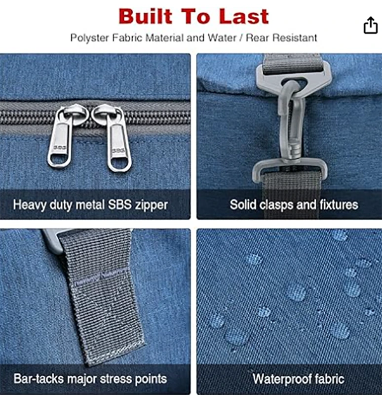 26.3 x 13.7 x 12.2 انچه د 65 لیټر ظرفیت او 1.74 پونډ سره پراخیږي. د فولډ اندازه: 10.6 x 9.4 x 3.9 انچ، د ذخیره کولو لپاره اسانه. دا ډوفل کڅوړه یوه پراخه اصلي کڅوړه او 6 جلا جیبونه لري. خپل سامانونه ښه تنظیم کړئ.