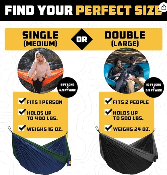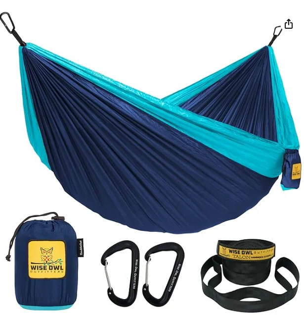 د پورټ وړ 3-in -1 کیمپینګ هامیک، زموږ قوي هاماک یو هوښیاره حل دی چې پای ته رسیدلی شي! دا د 2، 9 فوټو تیلون پټو سره مجهز دی، 2 o شکل کیبرینز، او د ذخیره کولو بنده کڅوړه. لکه څنګه چې تنظیم کول اسانه دي، زموږ حمام د کیمپ کولو اړین دی.