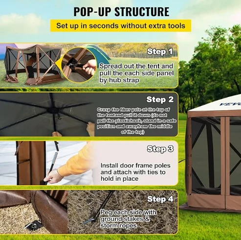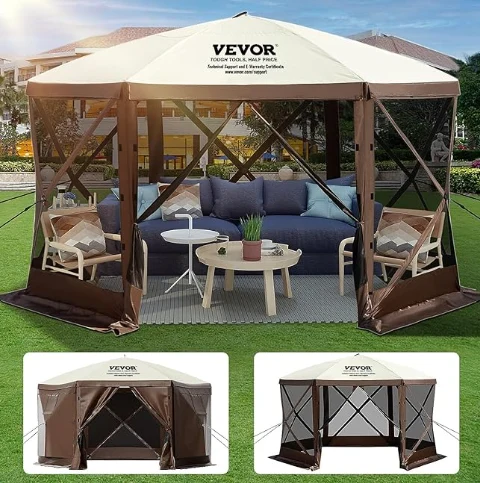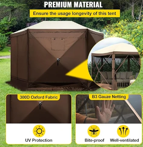د باران په چپاګون کیمولا خیمې خرڅلاو خیمې، کیمپینګ ګوزیب خیمې له 300D اکسفورډ پارچه او b3ga شبکه جوړه شوې ده. دا د آی.پکس 3 کاستروف، بروټ ثبوت، او UV د 12 'x 12' ګزبو کینوپي د بیروني سرپناه کارولو لپاره لوی ځای چمتو کوي.